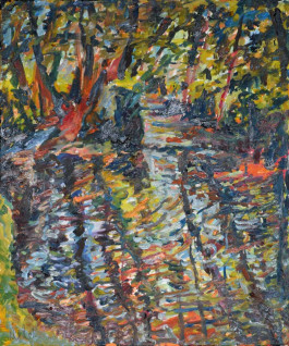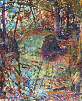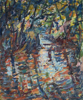 Die Nähe zur Natur, ihr immer währender Wechsel zwischen Entstehen und Vergehen, der Ablauf der Jahreszeiten, die Schönheit im Kleinsten, all das beschäftigte Olaf W. Melchior in seinen letzten Jahren. Inspiriert durch Spaziergänge an der Pegnitz, Aufenthalten in Kainsbach und Goethes „Erlkönig“ widmete er sich in seinen letzten Plein-Air-Werken sowie mehreren Zeichnungen den Erlen am Bachlauf.